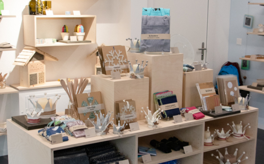 Die Produkte aus Holz, Textilien, Glas und anderen Materialien können Sie in unseren Atelier-Läden anschauen und kaufen – und hier auf der Website schon einmal online ansehen.