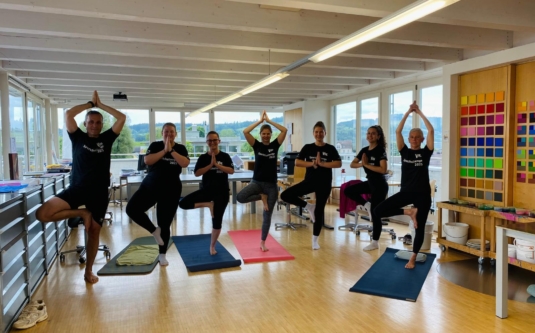 Ein besonderes Highlight ist unsere interne Yoga-Gruppe. Hier treffen sich Mitarbeiter:innen 1x im Monat, um gemeinsam zur Ruhe zu kommen, Kraft zu tanken und den Arbeitstag bewusst ausklingen zu lassen. Ein wunderbares Beispiel dafür, wie man Körper und Geist in Einklang bringt, mitten im Arbeitsalltag.